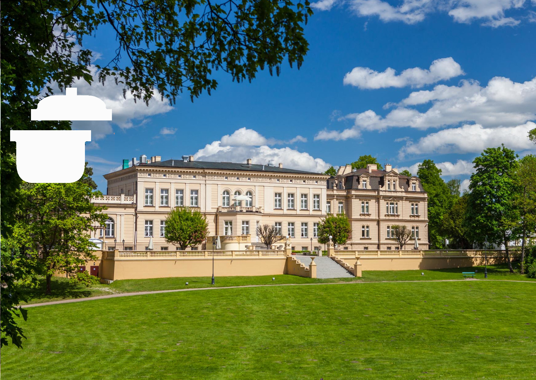 Restauracja Pałacowa mieści się w reprezentatywnych wnętrzach Pałacu Nowego. Wszystkie dania oraz desery przygotowywane są w kuchni i cukierni pałacowej. Nasze specjały wytwarzane są z naturalnych produktów pochodzących od lokalnych dostawców. Pasja i zaangażowanie naszego personelu pod okiem doświadczonego Szefa Kuchni pozwolą Państwu delektować się wyśmienitą kompozycją smaków.