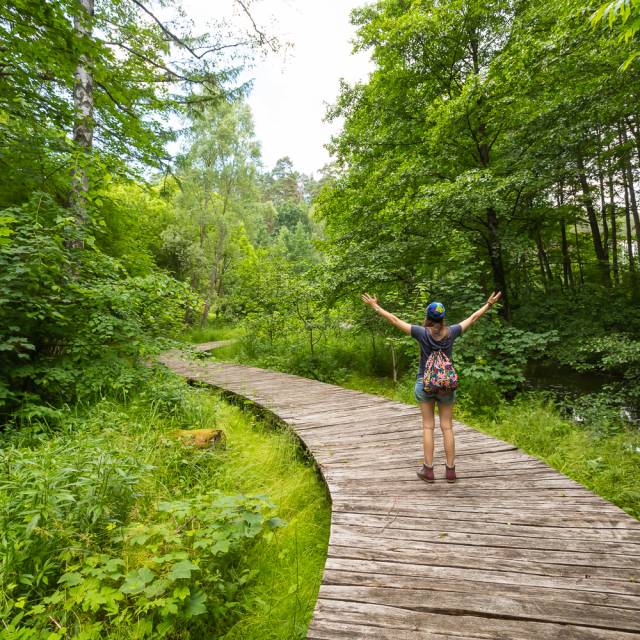 Ponad 100-letni drzewostan nad rzeką Stążką tworzy oazę dla miłośników przyrody. W parku dendrologicznym odnajdziesz blisko 150 gatunków drzew i krzewów, w tym takie okazy jak modrzew japoński, leszczyna turecka, cyprysik błotny, żywotnik japoński, brzoza omszona czy pęcherznica kalinolistna. Kładki na bagnach wprowadzą Cię w świat ptactwa błotnego i wyjątkowej roślinności. Usiądź na ławce, weź głęboki oddech i rozkoszuj się chwilą.
