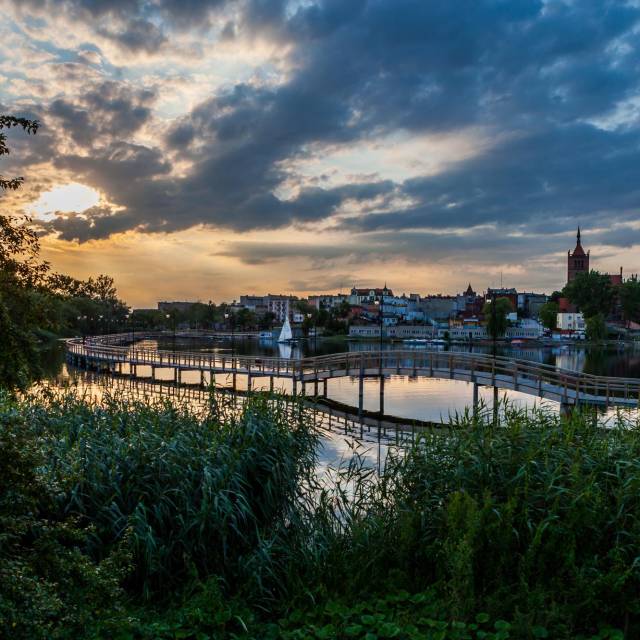 Trzepoczące na wietrze żagle to stały element tutejszego krajobrazu. Jezioro Chełmżyńskie to nie tylko wizytówka miasta. To gwarancja udanego wypoczynku w samym jego centrum. Biegnący wzdłuż jeziora bulwar 1000-lecia to idealne miejsce na spacer, szczególnie przy świetle zachodzącego słońca. Na przeciwległy brzeg jeziora zaprowadzi Cię pomost spacerowy, umieszczony nad taflą wody. Stąd podziwiać możesz panoramę miasta z górującymi wieżami gotyckich kościołów. Jednym z nich jest konkatedra pw. Świętej Trójcy, której historia sięga 1251 r. Pochowano w niej krzyżackich dostojników, w tym wielkiego mistrza Zygfryda von Feuchtwangen, który przeniósł stolicę państwa krzyżackiego z Wenecji do Malborka. Na przestrzeni wieków świątynię odwiedziło wielu polskich królów - Władysław Jagiełło, Kazimierz Jagiellończyk, Zygmunt August, Zygmunt III Waza wraz z synem Władysławem oraz Jan III Sobieski. Ten ostatni podarował chełmżyńskiej katedrze, jako wotum dziękczynne, czaprak konia wezyra Kara Mustafy, zdobyty podczas odsieczy wiedeńskiej. Przerobiony na kapę czaprak przechowywany jest w katedralnym skarbcu. Tam też skrywany jest ceramiczny kubek, z którym związana jest niezwykła historia. Ponoć jeśli zostanie on stłuczony, katedra ulegnie zniszczeniu. Tak przynajmniej głoszą podania…