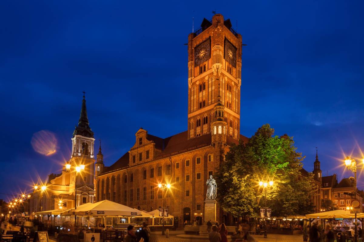 Warto wspiąć się na szczyt ratuszowej wieży, by zobaczyć jak z góry prezentuje się gród Kopernika.