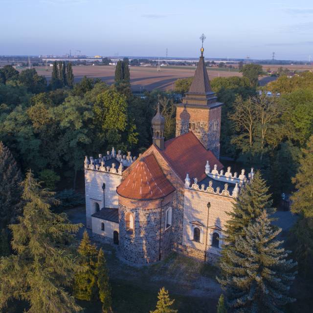 Powstała na przełomie XII i XIII w. świątynia, dziś stanowi ciekawe połączenie architektury różnych epok. Korpus nawowy z granitowych ciosów, prezbiterium zakończone półkolistą absydą i wieża ze schodami prowadzącymi na emporę to pamiątki z czasów romańskich. W stylu gotyckim kościół przebudowano zapewne w XV w., kiedy to podniesiono go do rangi kolegiaty. W XVI w. do świątyni dobudowano renesansową kaplicę św. Barbary. Ozdobiona rustyką sgraffitową i zwieńczona attyką kaplica jest dziełem włoskiego architekta Giovanni Battistę di Quadro. W jej wnętrzu znajduje się dwupiętrowy, przyścienny nagrobek Jana i jego syna Janusza Kościeleckich z 1559 r., jeden z najpiękniejszych tego typu w Polsce. W XIX w. do świątyni dobudowano, wzorowaną na kaplicy św. Barbary, neorenesansową kaplicę św. Jana Ewangelisty (obecnie kaplica Serca Jezusowego).
