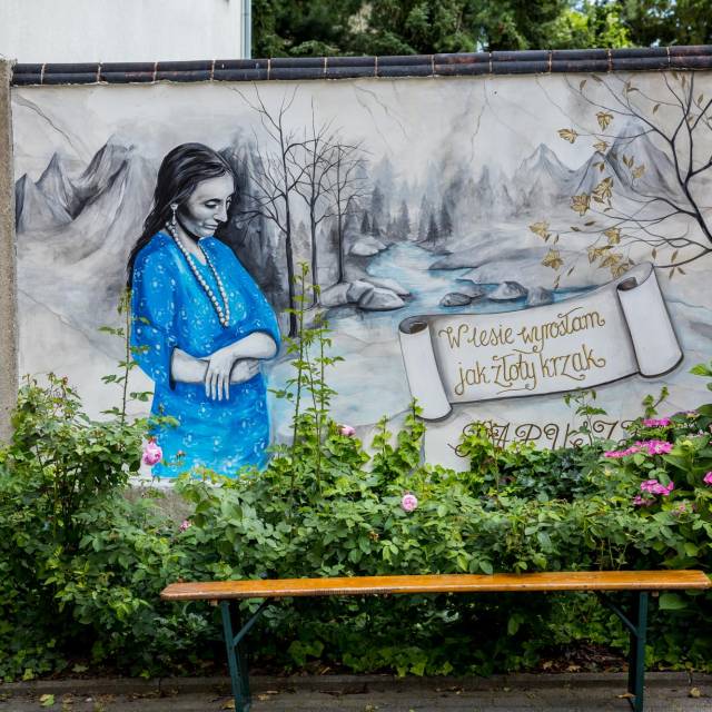 Mural, na terenie Muzeum im. Jana Kasprowicza upamiętnia Papuszę, czyli Bronisławę Wajs, wyjątkową romską poetkę. Jej dzieciństwo pełne było dźwięków wędrującego taboru, a piękno jej duszy wyrażało się w „piosenkach”, jak nazywała swoje wiersze. Jerzy Ficowski odkrył i przetłumaczył jej twórczość, umożliwiając światu poznanie jej talentu. Niestety, popularność przyniosła jej wykluczenie z romskiej społeczności. Ostatnie lata spędziła w Inowrocławiu, gdzie zmarła w 1987 roku. Mural stanowi hołd dla jej wyjątkowej wrażliwości i artystycznej spuścizny.