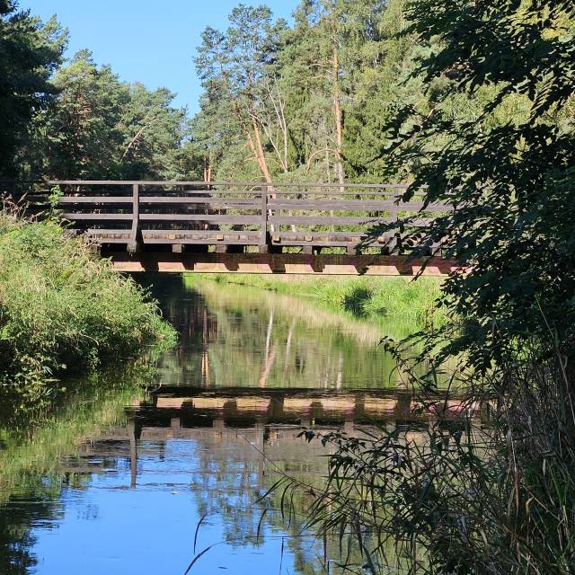 Startujemy w Białej, gdzie początek trasy wiedzie przez las, obok kanału Brdy i znajdującego się w okolicy wyjątkowego akweduktu w Fojutowie. Przy jeziorze Krasne skręcamy w prawo i ścieżką rowerową docieramy do Legbąda. Wracamy asfaltem o małym natężeniu ruchu – niezwykle malowniczym odcinkiem, szczególnie o zachodzie słońca.