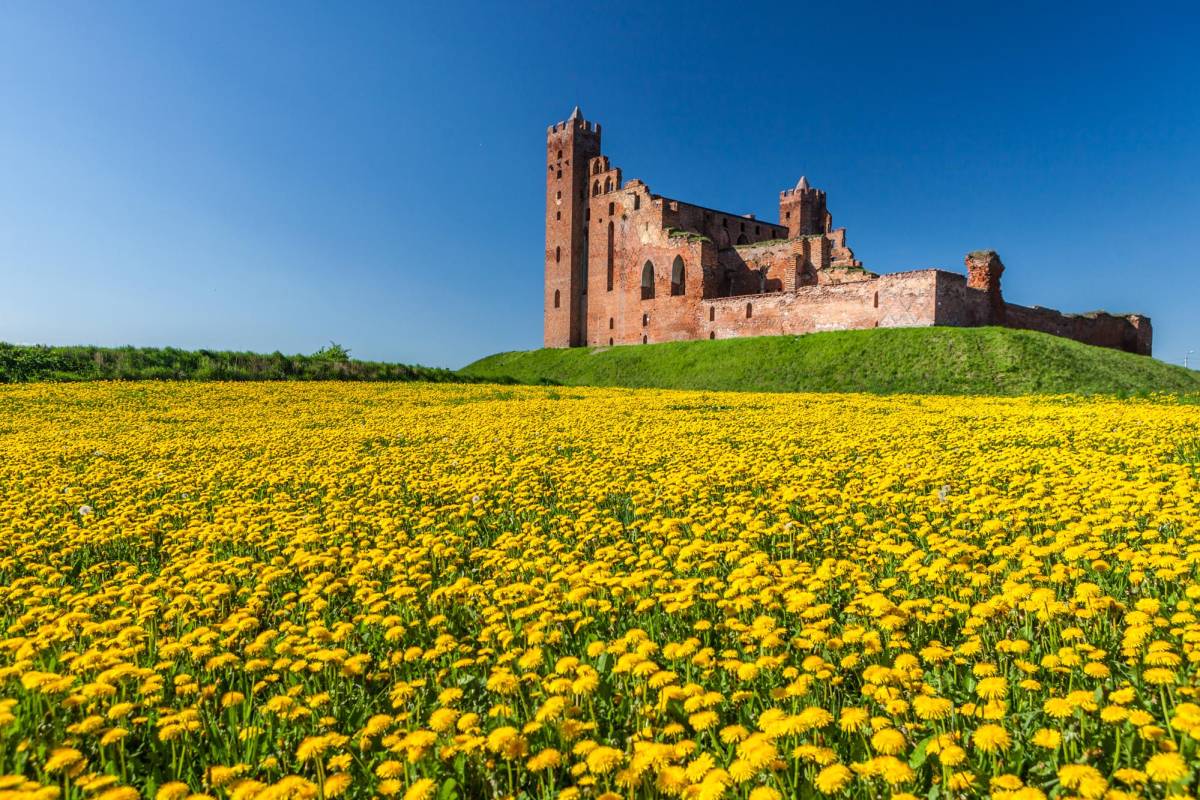 Radzyń Chełmiński już z daleka intryguje ruinami krzyżackiego zamku. Jak ważną rolę pełnił w państwie zakonnym świadczy fakt, iż po klęsce na polach Grunwaldzkich, właśnie tu wielki szafarz królewiecki, Jerzy von Wirsberg, zdeponował istotną część zakonnego skarbca, w tym osobiste srebra wielkiego mistrza Ulricha von Jungingena. Dzisiejsze ruiny to tylko wspomnienie dawnej świetności krzyżackiej warowni, ale jej dawną potęgę wciąż dostrzec można w ocalałych murach. Warto wybrać się do zamkowych podziemi i wspiąć na szczyt zamkowej wieży. Zwiedzając zwróć uwagę na tajemne znaki wyryte w murze. To pamiątka po kręconych na zamku odcinkach kultowego serialu „Pan Samochodzik i Templariusze”.