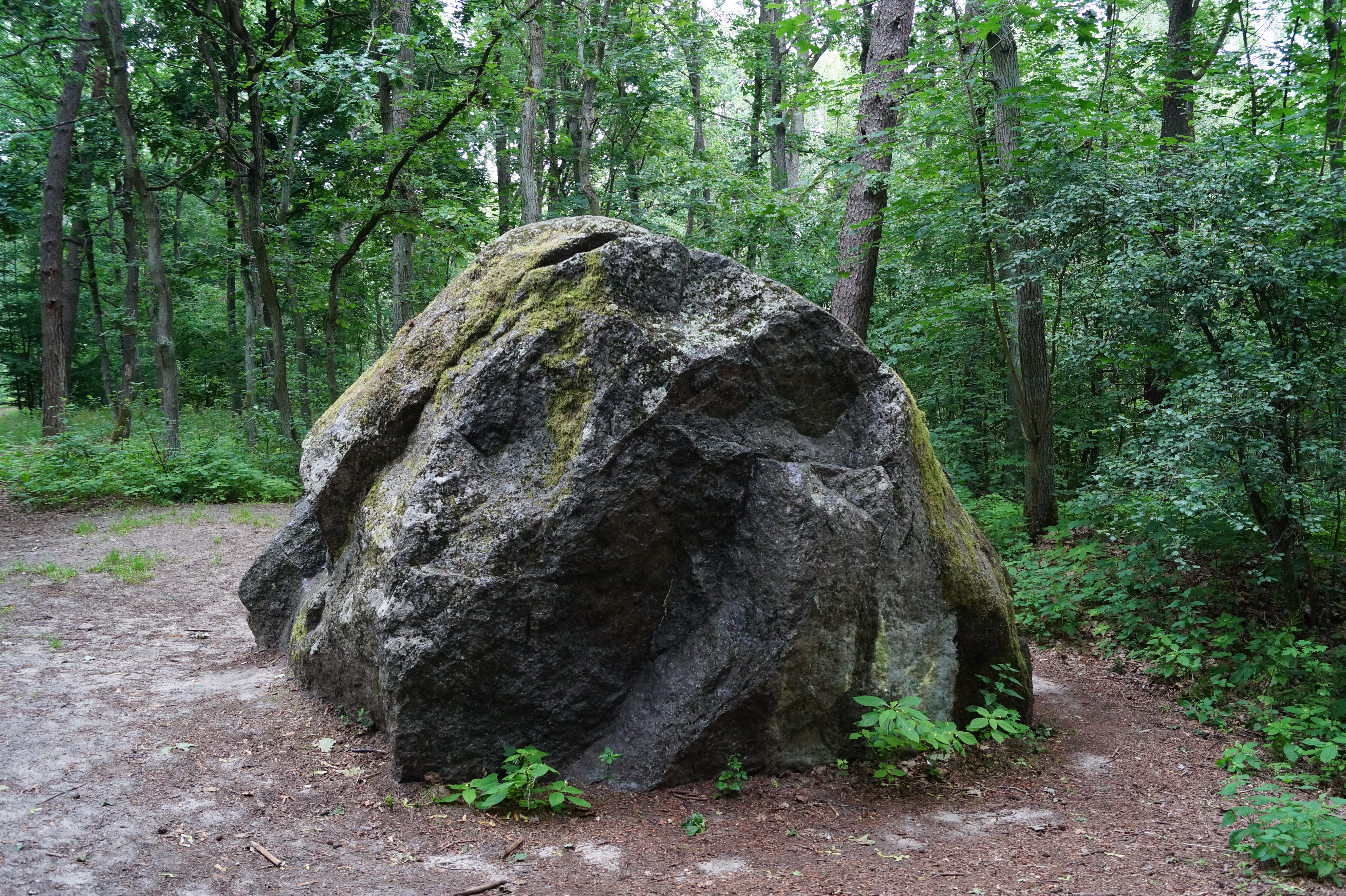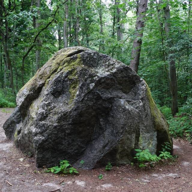 Well, a long time ago there was an evil sorcerer's castle here. He lured children lost in the forest and turned them into stone statues. Once upon a time, a boy wandered here looking for his missing siblings. He recognized his brothers in the fossilized forms. He was not deceived by the magician. He outwitted him and the spell lost its power. All the children were saved, and the curse turned against the sorcerer. His castle turned into a huge boulder, and he himself rested forever, trapped inside it. This is what the legend says... In fact, it is a post-glacial erratic boulder, a monument of inanimate nature, with impressive dimensions: 13 m in circumference and over 3 m in height.