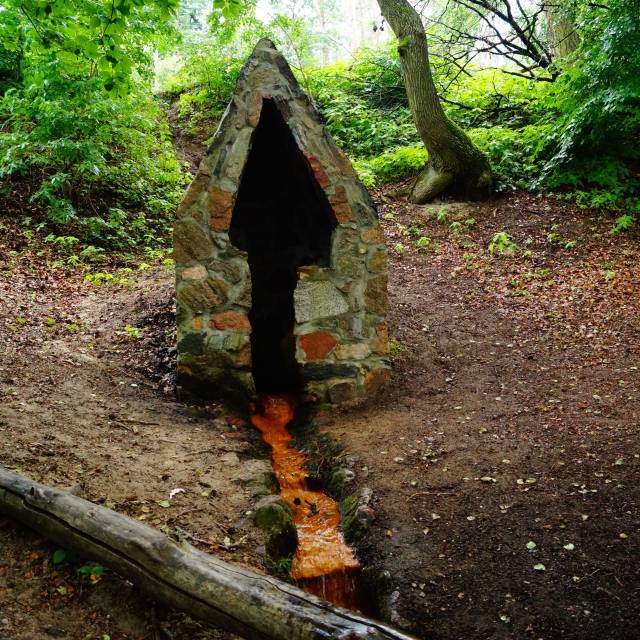 The spring of St. Hubert, which is a natural monument is hidden in the forest, on the eastern slope of Lake Ostrowieckie, near Wiktorów. Surrounded by a stone well, it resembles a chapel. The rusty color of the stones in the spring bed indicates that the water flowing from it contains a lot of iron.