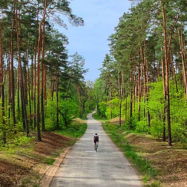 The route begins at the edge of the forests of the Gostynińsko-Włocławek Landscape Park. The first kilometers follow a picturesque bike path – a section of the Vistula Cycle Route – which leads us through peaceful areas towards Lake Rybnica. Beyond the lake, we join a lightly trafficked paved road, perfect for a leisurely ride. In the village of Mursk, it's worth stopping briefly to see the Evangelical-Augsburg cemetery, a testament to the area's ancient history. After completing the paved section, we'll encounter a varied stretch of forest roads in varying conditions. Initially, gravel roads dominate, but near Lake Ruda, the surface becomes more challenging. However, the more challenging terrain is compensated by beautiful views of the lake and the surrounding nature. Just past the next lake – Gościąż – we re-enter wide, comfortable gravel roads, which lead us to Lake Skrzyneckie. There, the surface turns to asphalt, but before reaching it, we overcome the most demanding sandy section of the route. The final stage features long stretches of forest gravel, followed by winding asphalt through a landscape park. Next, we enter a section of the bike path leading through the so-called "Little Bieszczady Mountains" – small but picturesque hills covered with forest. From the path, we turn onto a section of concrete slabs that leads through open spaces with exceptional views. The final section is a return to the route familiar from the initial kilometers.